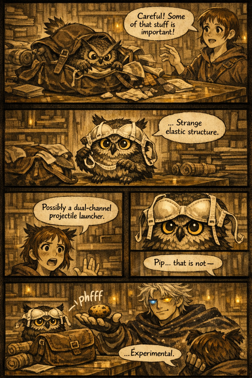 Orrin stood at the archive table with Mandy’s satchel in his claws.